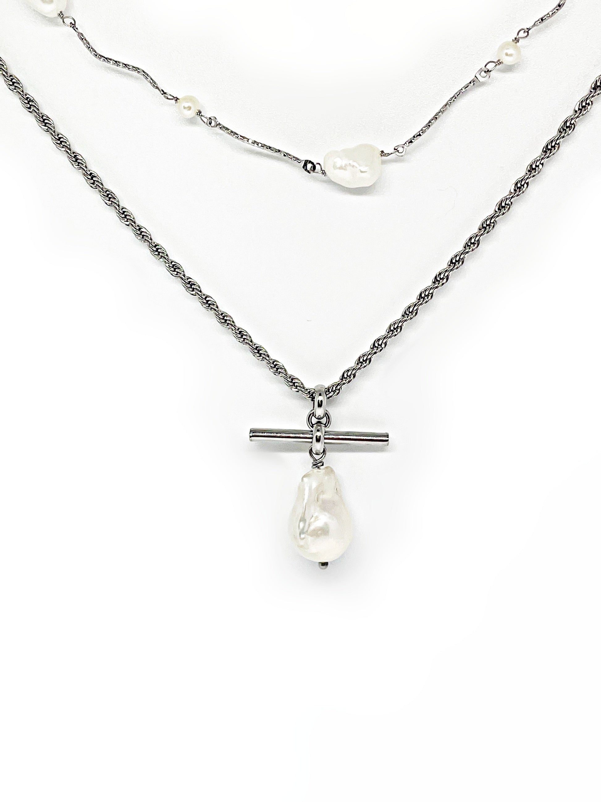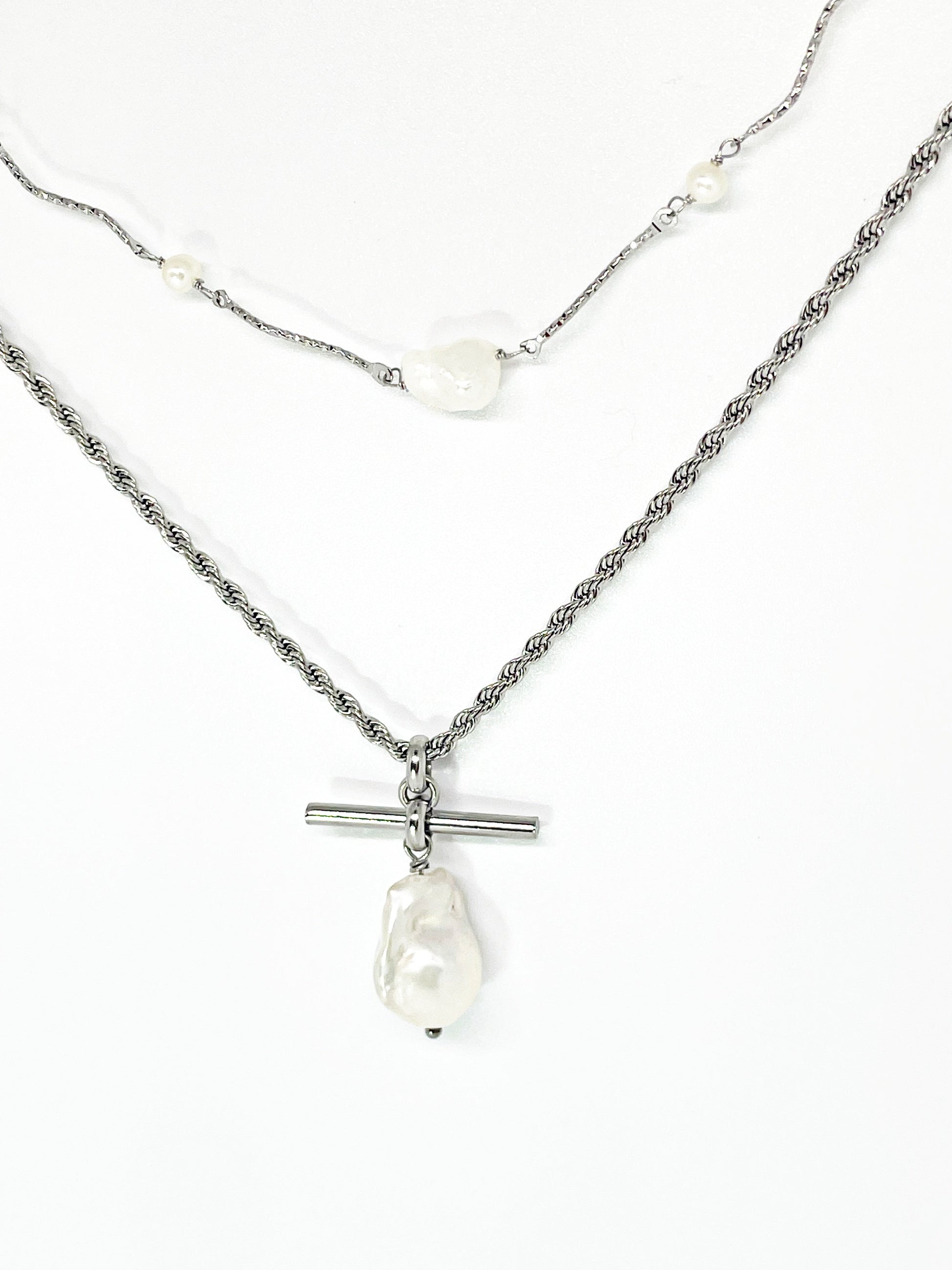 - Material: Stainless steel chain, Natural baroque freshwater pearl